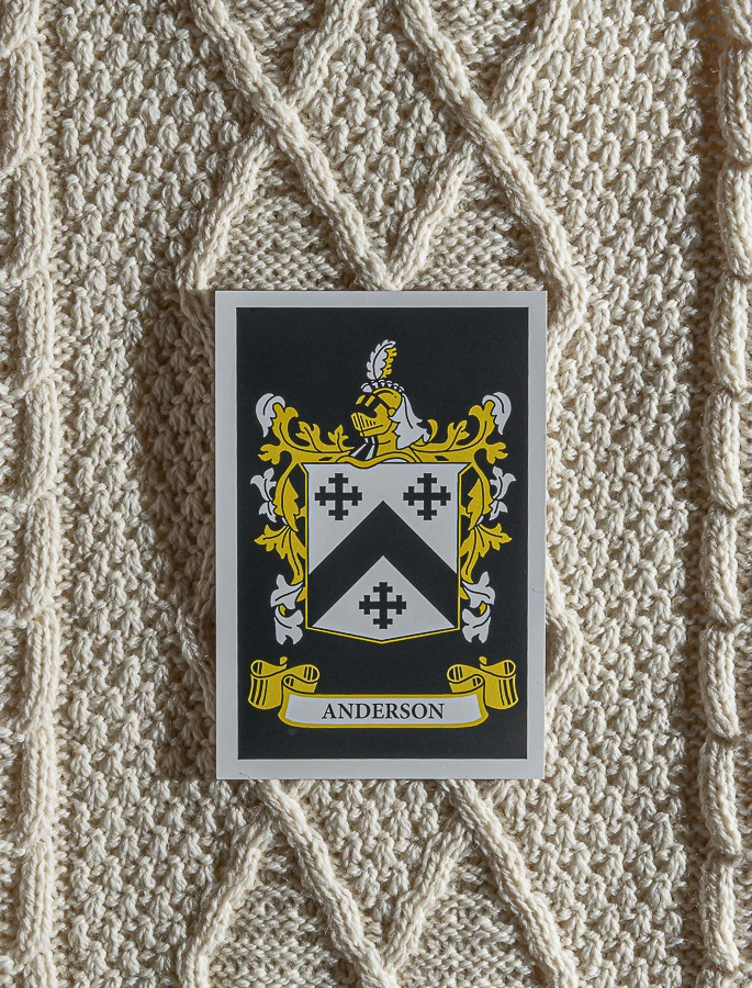 The Anderson Clan Aran Scarf is a wonderful item of Anderson heritage which will be cherished by the wearer for generations to come. Lovingly crafted from the finest 100% soft new wool, this Aran wool scarf has been created following the unique Anderson Clan Aran pattern.