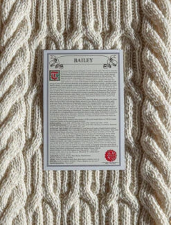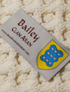 The Bailey Clan Aran Scarf is a wonderful item of Bailey heritage which will be cherished by the wearer for generations to come. Lovingly crafted from the finest 100% soft new wool, this Aran wool scarf has been created following the unique Bailey Clan Aran pattern.