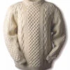 The hand knit Barrett sweater has an unusual trellis centre panel, flanked by honeycomb rope and moss-filled diamonds on either side. The trellis stitch represents the walled fields of the Aran Islands, honeycomb represents work, and the diamonds represent wealth. This beautiful Aran sweater has been hand knitted in the traditional bĂĄinĂn (pronounced âbaw neenâ) colour, the natural white of the wool. It comes to you complete with a clan history and crest. It is made of 100% pure new wool, is water repellent and breathable. It has been hand crafted in the traditional Irish style, and, with care, will last a lifetime.