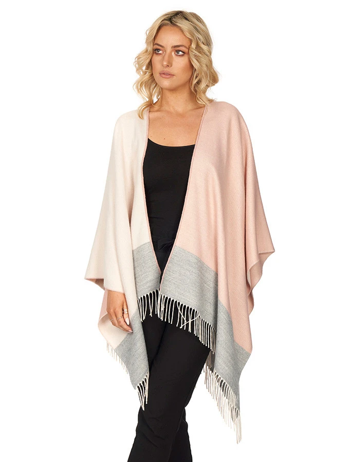 A gorgeous reversible shawl that can also be worn as a wrap or a cape.