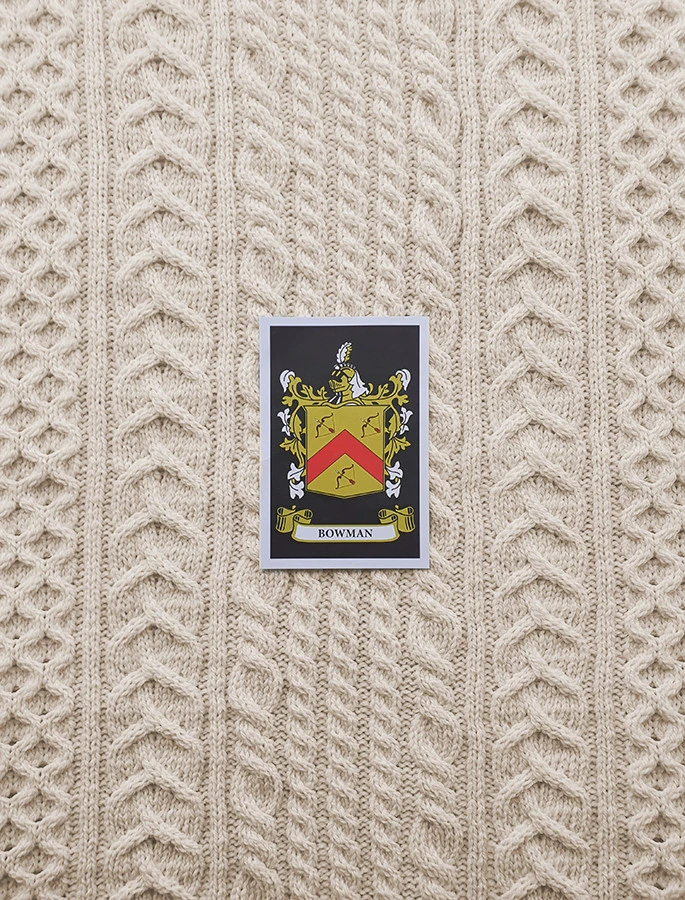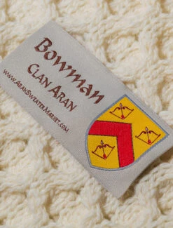 The Bowman Clan Aran Throw is a precious gift for any home wherein Bowman heritage proudly resides & will be cherished by families of the Bowman name for generations to come. Lovingly crafted from the finest 100% soft new wool, this Aran throw (measuring 64″ X 40″) has been created following the unique Bowman Clan Aran pattern.