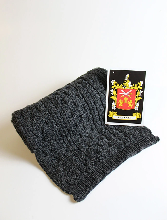 The Brennan Clan Aran Scarf is a wonderful item of Brennan heritage which will be cherished by the wearer for generations to come. Lovingly crafted from the finest 100% soft new wool, this Aran wool scarf has been created following the unique Brennan Clan Aran pattern.