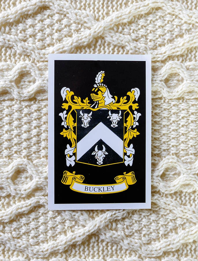 The Buckley Clan Aran Throw is a precious gift for any home wherein Buckley heritage proudly resides & will be cherished by families of the Buckley name for generations to come. Lovingly crafted from the finest 100% soft new wool, this Aran throw (measuring 64″ X 40″) has been created following the unique Buckley Clan Aran pattern.