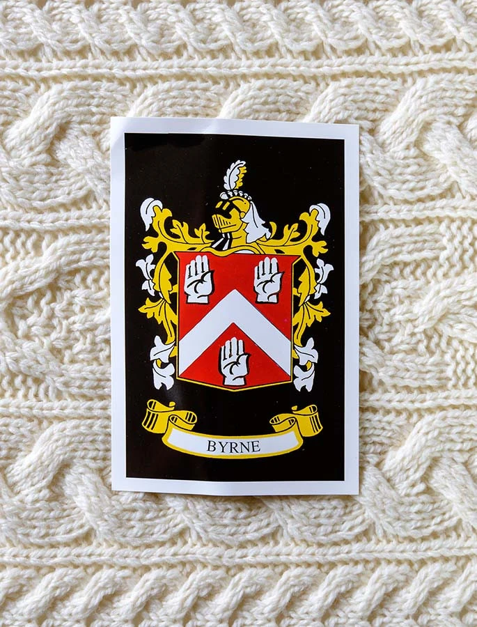 The Byrne Clan Aran Throw is a precious gift for any home wherein Byrne heritage proudly resides & will be cherished by families of the Byrne name for generations to come. Lovingly crafted from the finest 100% soft new wool, this Aran throw has been created following the unique Byrne Clan Aran pattern.
