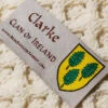 The hand knit Byrne sweater has a moss-filled chevron centre stitch, flanked by the cable, braid, and link stitches on either side. The moss stitch represents nature, the cable represents good luck, and the link stitch is symbolic of the unbroken chain between the Irish who emigrate and those who remain at home. This beautiful Aran sweater has been hand knitted in the traditional báinín (pronounced ‘baw neen’) colour, the natural white of the wool. It comes to you complete with a clan history and crest. It is made of 100% pure new wool, is water repellent and breathable. It has been hand crafted in the traditional Irish style, and, with care, will last a lifetime.
