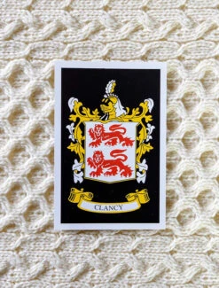The Clancy Clan Aran Throw is a precious gift for any home wherein Clancy heritage proudly resides & will be cherished by families of the Clancy name for generations to come. Lovingly crafted from the finest 100% soft new wool, this Aran throw (measuring 64″ X 40″) has been created following the unique Clancy Clan Aran pattern.