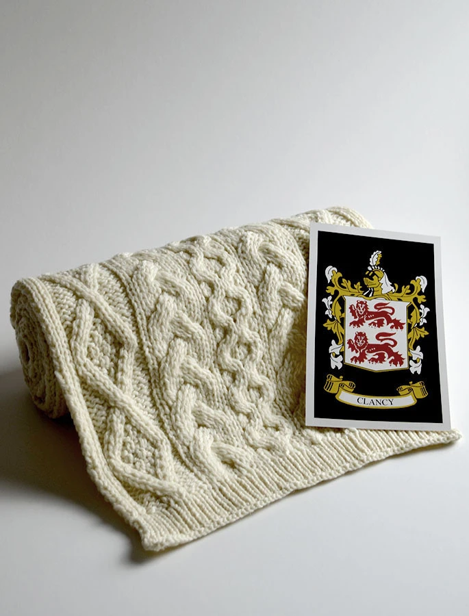 The Clancy Clan Aran Scarf is a wonderful item of Clancy heritage which will be cherished by the wearer for generations to come. Lovingly crafted from the finest 100% soft new wool, this Aran wool scarf has been created following the unique Clancy Clan Aran pattern