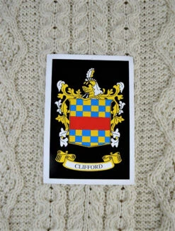The Clifford Clan Aran Throw is a precious gift for any home wherein Clifford heritage proudly resides & will be cherished by families of the Brett name for generations to come. Lovingly crafted from the finest 100% soft new wool, this Aran throw (measuring 64″ X 40″) has been created following the unique Clifford Clan Aran pattern.