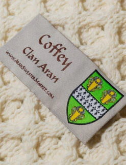 The Coffey Clan Aran Poncho is a precious gift for anyone of Coffey Clan heritage. Lovingly crafted from the finest 100% soft new wool, this Aran Poncho has been created following the unique Coffey Clan Aran pattern.