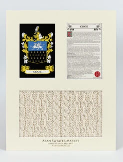 The Cook Clan Aran & History Display is a wonderful item of Cook heritage which can be proudly displayed in your home or place of work to demonstrate the pride your have in your Cook name.