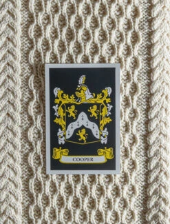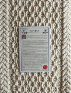 The Cooper Clan Aran Scarf is a wonderful item of Cooper heritage which will be cherished by the wearer for generations to come. Lovingly crafted from the finest 100% soft new wool, this Aran wool scarf has been created following the unique Cooper Clan Aran pattern.Β