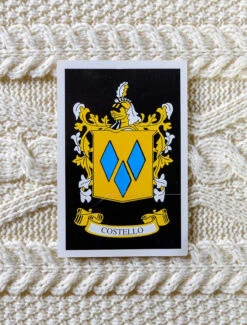 The Costello Clan Aran Throw is a precious gift for any home wherein Costello heritage proudly resides & will be cherished by families of the Costello name for generations to come. Lovingly crafted from the finest 100% soft new wool, this Aran throw (measuring 64″ X 40″) has been created following the unique Costello Clan Aran pattern.