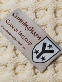 The Cunningham Clan Aran Scarf is a wonderful item of Cunningham heritage which will be cherished by the wearer for generations to come. Lovingly crafted from the finest 100% soft new wool, this Aran wool scarf has been created following the unique Cunningham Clan Aran pattern.