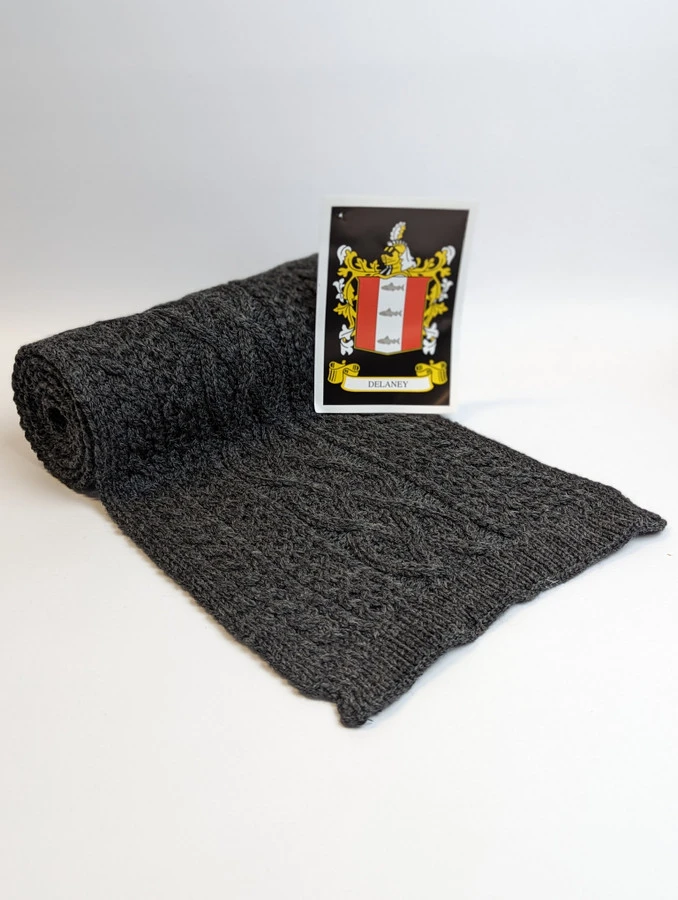 The Delaney Clan Aran Scarf is a wonderful item of Delaney heritage which will be cherished by the wearer for generations to come. Lovingly crafted from the finest 100% soft new wool, this Aran wool scarf has been created following the unique Delaney Clan Aran pattern.