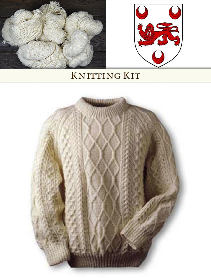 This knitting kit is comprised of the finest traditional pure new Aran Wool, together with your Family Crest, sweater history and your Dillon knitting pattern. We provide enough Aran wool to create your perfectly sized sweater plus a little extra. This Traditional Irish 100% wool is water repellent, breathable and a delight to work with. The pattern is an easy to follow design, tailored specifically to suit your exact size requirements.