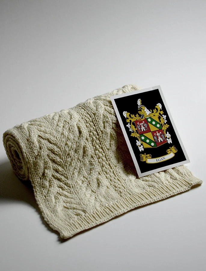 The Egan Clan Aran Scarf is a wonderful item of Egan heritage which will be cherished by the wearer for generations to come. Lovingly crafted from the finest 100% soft new wool, this Aran wool scarf has been created following the unique Egan Clan Aran pattern.