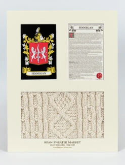 The Finnegan Clan Aran & History Display is a wonderful item of Finnegan heritage which can be proudly displayed in your home or place of work to demonstrate the pride your have in your Finnegan name.