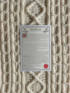 The Finnegan Clan Aran Scarf is a wonderful item of Finnegan heritage which will be cherished by the wearer for generations to come. Lovingly crafted from the finest 100% soft new wool, this Aran wool scarf has been created following the unique Finnegan Clan Aran pattern.Β