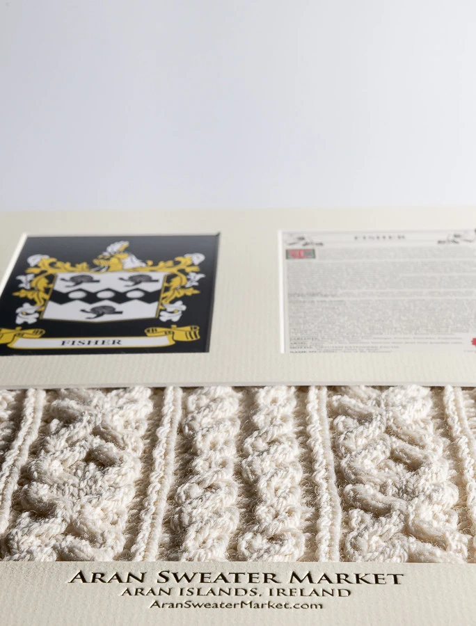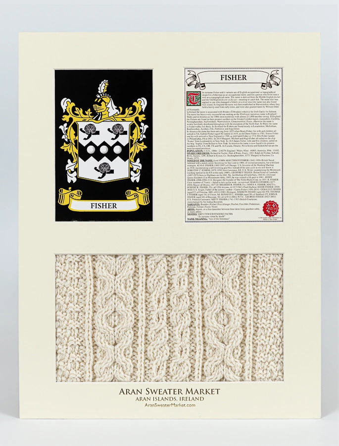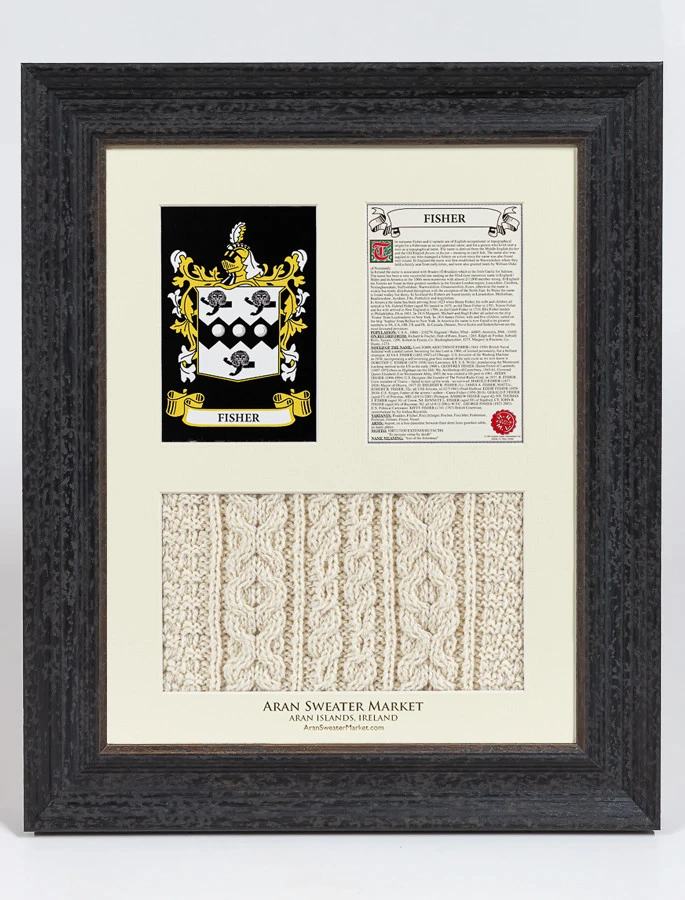 The Fisher Clan Aran & History Display is a wonderful item of Fisher heritage which can be proudly displayed in your home or place of work to demonstrate the pride your have in your Fisher name.