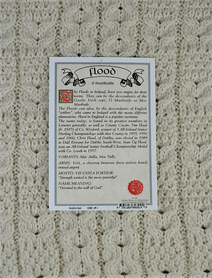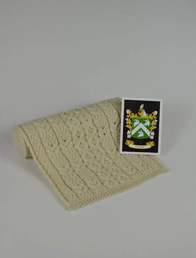 The Flood Clan Aran Scarf is a wonderful item of Flood heritage which will be cherished by the wearer for generations to come. Lovingly crafted from the finest 100% soft new wool, this Aran wool scarf has been created following the unique Flood Clan Aran pattern.