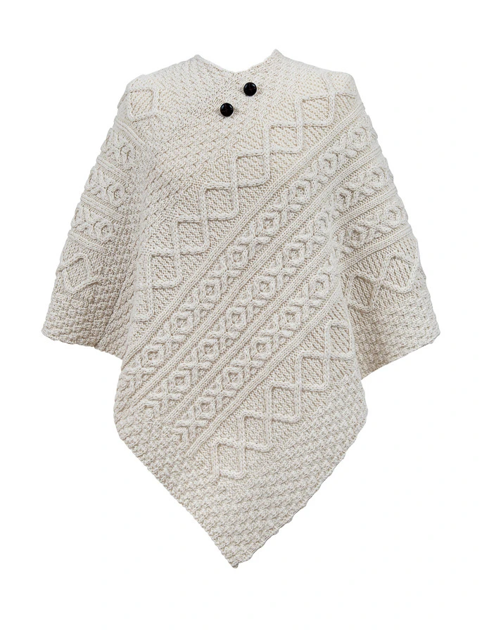 The Fogarty Clan Aran Poncho is a precious gift for anyone of Fogarty Clan heritage. Lovingly crafted from the finest 100% soft new wool, this Aran Poncho has been created following the unique Fogarty Clan Aran pattern.