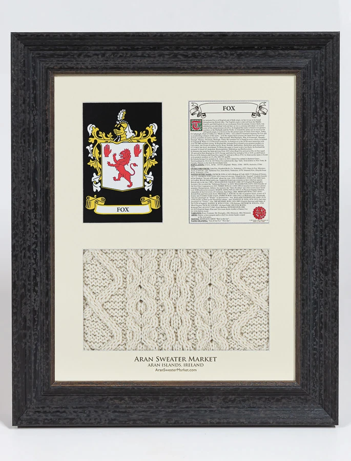 The Fox Clan Aran & History Display is a wonderful item of Fox heritage which can be proudly displayed in your home or place of work to demonstrate the pride your have in your Fox name.