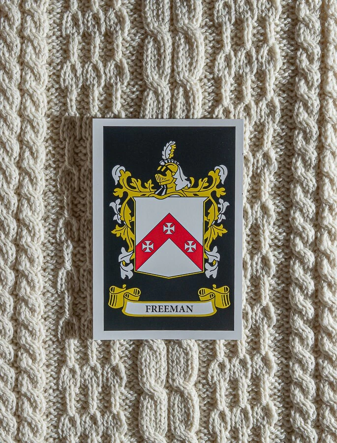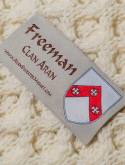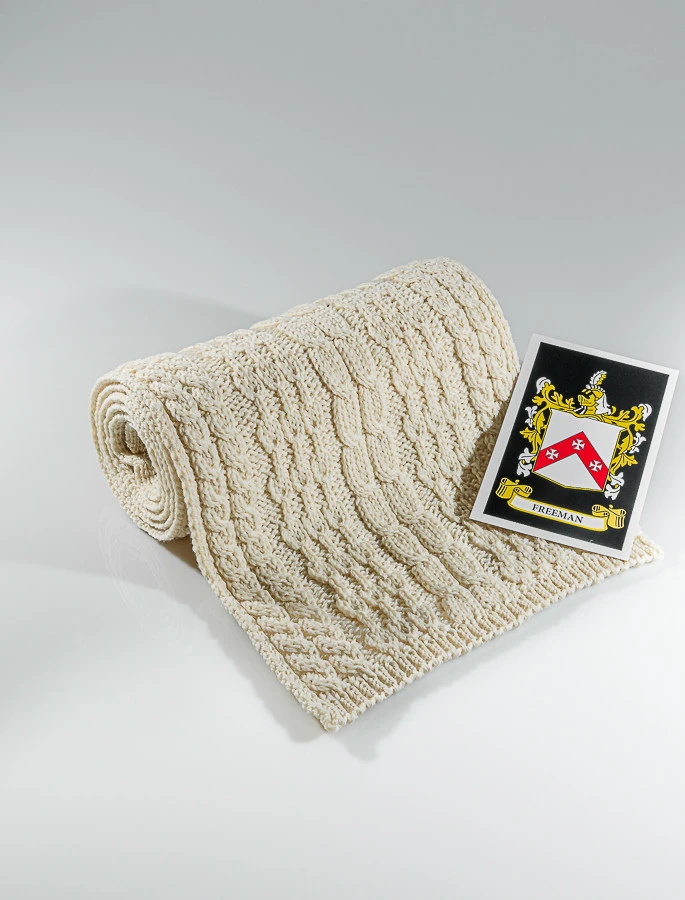 The Freeman Clan Aran Scarf is a wonderful item of Freeman heritage which will be cherished by the wearer for generations to come. Lovingly crafted from the finest 100% soft new wool, this Aran wool scarf has been created following the unique Freeman Clan Aran pattern.