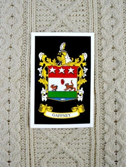 The Gaffney Clan Aran Scarf is a wonderful item of Gaffney heritage which will be cherished by the wearer for generations to come. Lovingly crafted from the finest 100% soft new wool, this Aran wool scarf has been created following the unique Gaffney Clan Aran pattern.