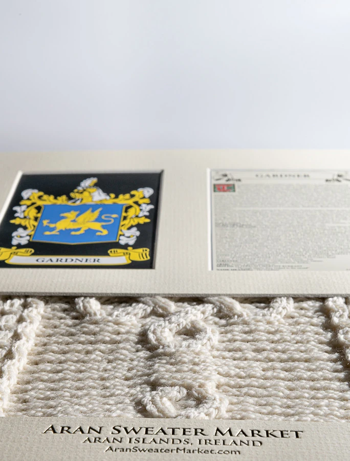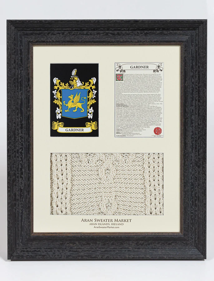 The Gardner Clan Aran & History Display is a wonderful item of Gardner heritage which can be proudly displayed in your home or place of work to demonstrate the pride your have in your Gardner name.