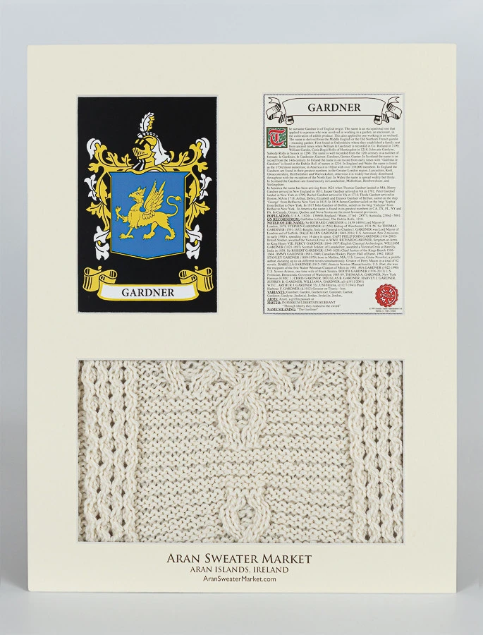 - Lovingly handcrafted & using the finest 100% soft new wool, this Gardner Clan Aran & History Display has been created following the historic family pattern of your clan.
