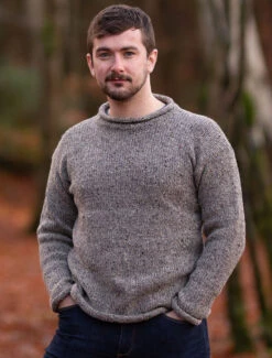 One of our favorites, the Roll Neck Sweater is a flattering fitted gents knit with a roll collar.