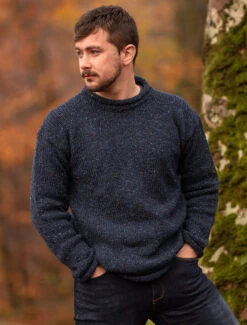One of our favorites, the Roll Neck Sweater is a flattering fitted gents knit with a roll collar.