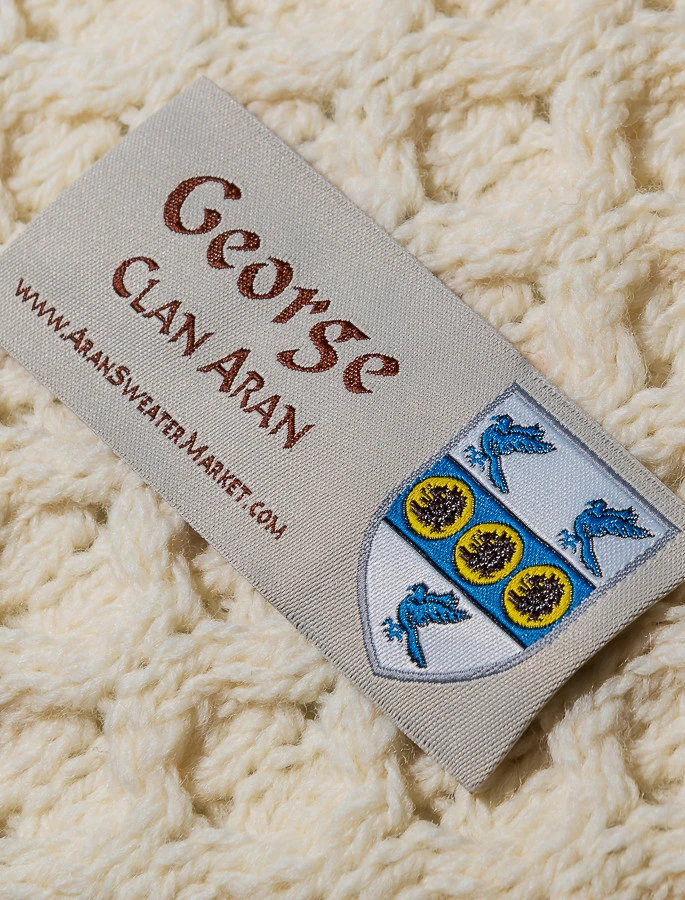 The George Clan Aran Scarf is a wonderful item of George heritage which will be cherished by the wearer for generations to come. Lovingly crafted from the finest 100% soft new wool, this Aran wool scarf has been created following the unique George Clan Aran pattern.ย