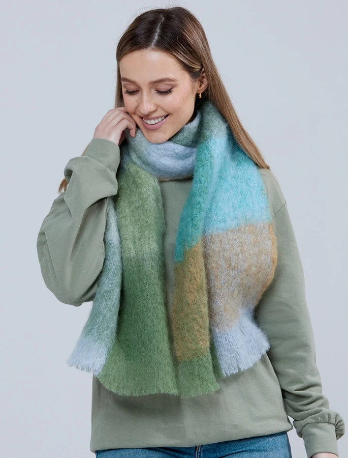 Giant Mohair Scarf – Blue/Green Block – Reviews