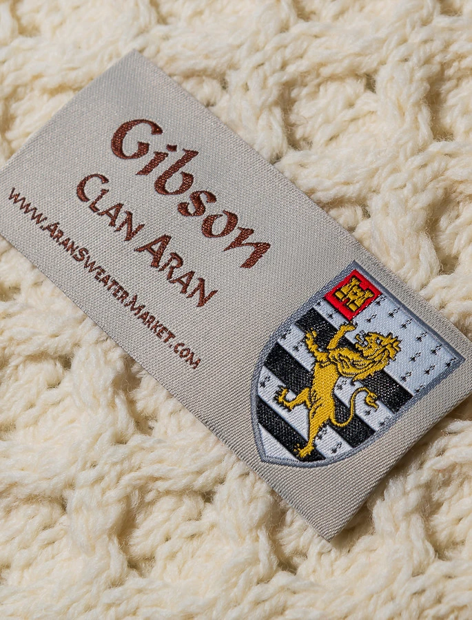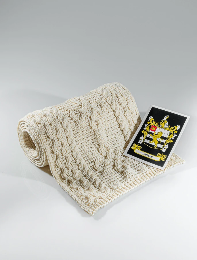 The Gibson Clan Aran Scarf is a wonderful item of Gibson heritage which will be cherished by the wearer for generations to come. Lovingly crafted from the finest 100% soft new wool, this Aran wool scarf has been created following the unique Gibson Clan Aran pattern.