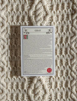 The Gray Clan Aran Throw is a precious gift for any home wherein Gray heritage proudly resides & will be cherished by families of the Gray name for generations to come. Lovingly crafted from the finest 100% soft new wool, this Aran throw (measuring 64″ X 40″) has been created following the unique Gray Clan Aran pattern.