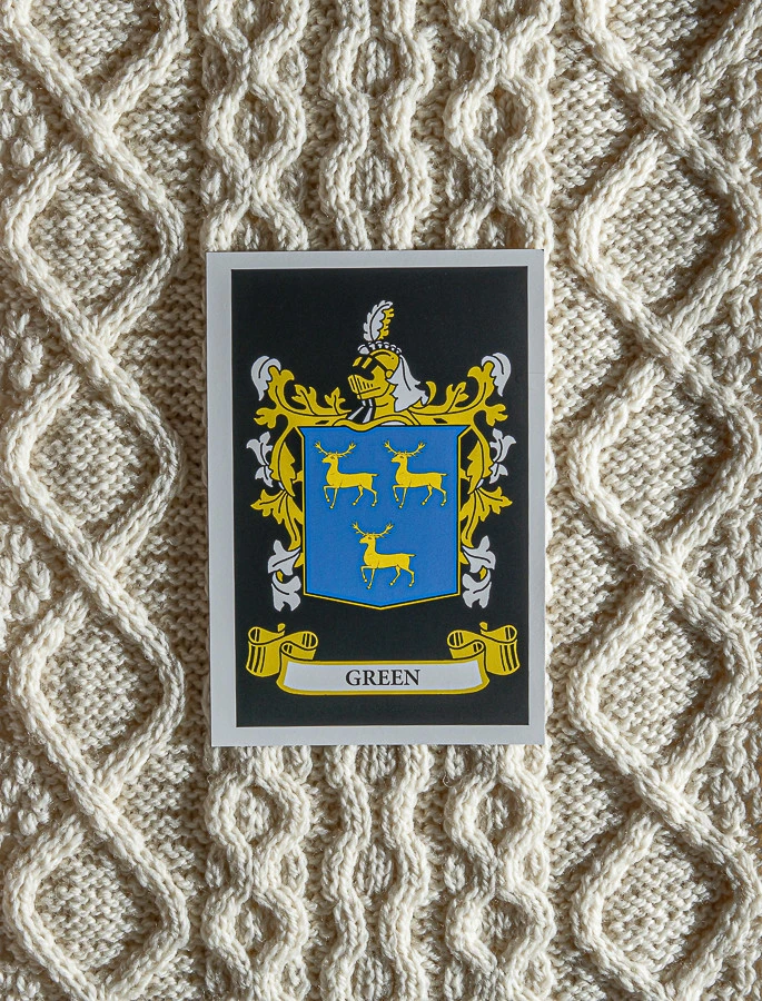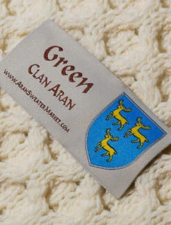 The Green Clan Aran Throw is a precious gift for any home wherein Green heritage proudly resides & will be cherished by families of the Green name for generations to come. Lovingly crafted from the finest 100% soft new wool, this Aran throw (measuring 64″ X 40″) has been created following the unique Green Clan Aran pattern.