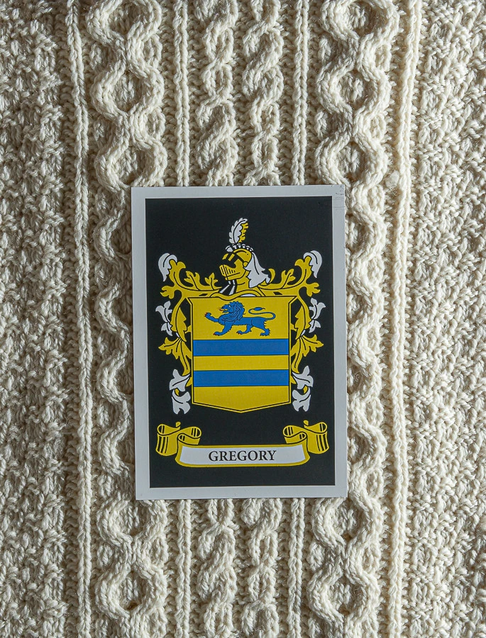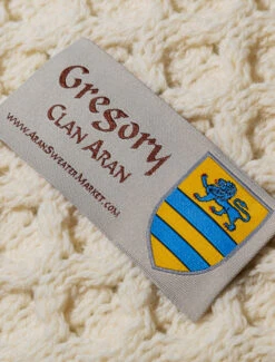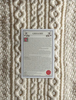 The Gregory Clan Aran Scarf is a wonderful item of Gregory heritage which will be cherished by the wearer for generations to come. Lovingly crafted from the finest 100% soft new wool, this Aran wool scarf has been created following the unique Gregory Clan Aran pattern.ย