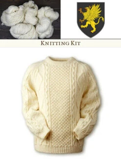 This knitting kit is comprised of the finest traditional pure new Aran Wool, together with your Family Crest, sweater history and your Griffin knitting pattern. We provide enough Aran wool to create your perfectly sized sweater plus a little extra. This Traditional Irish 100% wool is water repellent, breathable and a delight to work with. The pattern is an easy to follow design, tailored specifically to suit your exact size requirements.
