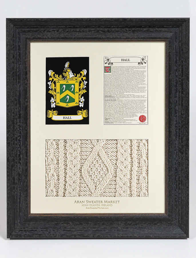 The Hall Clan Aran & History Display is a wonderful item of Hall which can be proudly displayed in your home or place of work to demonstrate the pride your have in your Hall name.