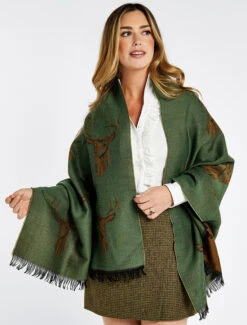 Heatherbell Wool Tweed Fringed Stole – Dusky Green – Reviews
