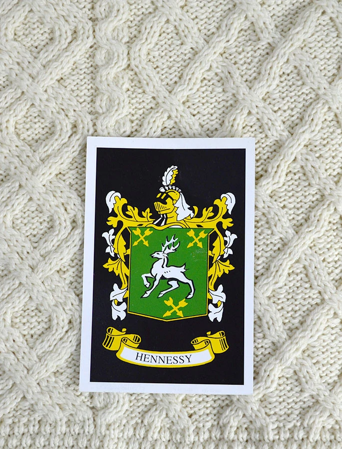 The Hennessy Clan Aran Throw is a precious gift for any home wherein Hennessy heritage proudly resides & will be cherished by families of the Hennessy name for generations to come. Lovingly crafted from the finest 100% soft new wool, this Aran throw (measuring 64″ X 40″) has been created following the unique Hennessy Clan Aran pattern.