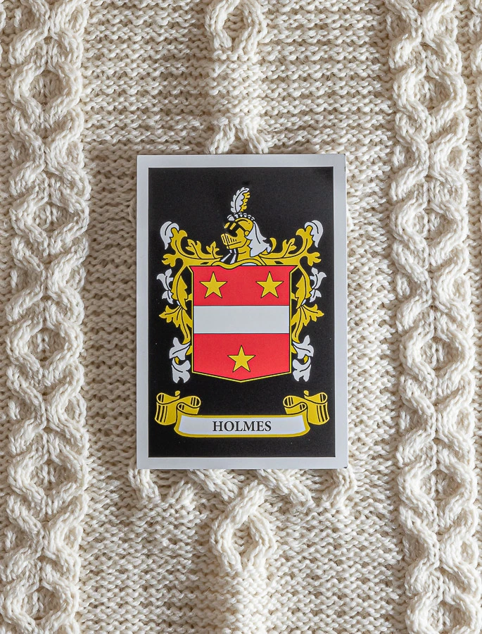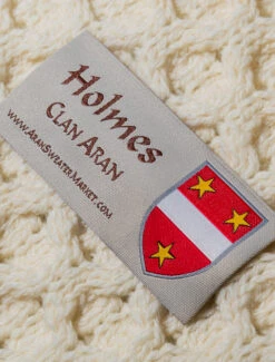 The Holmes Clan Aran Throw is a precious gift for any home wherein Holmes heritage proudly resides & will be cherished by families of the Holmes name for generations to come. Lovingly crafted from the finest 100% soft new wool, this Aran throw (measuring 64″ X 40″) has been created following the unique Holmes Clan Aran pattern.