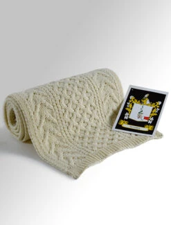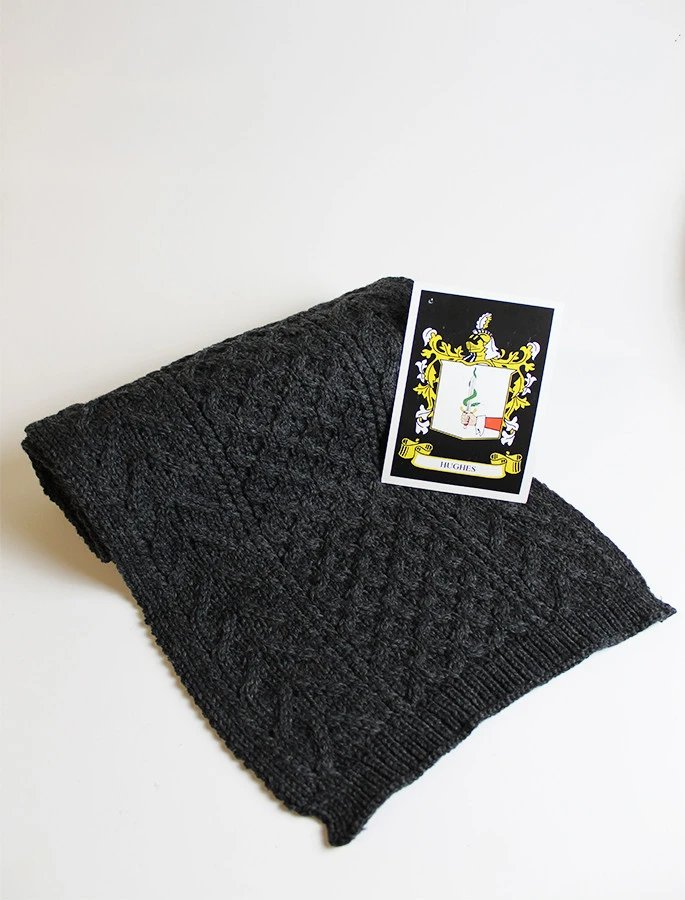 The Hughes Clan Aran Scarf is a wonderful item of Hughes heritage which will be cherished by the wearer for generations to come. Lovingly crafted from the finest 100% soft new wool, this Aran wool scarf has been created following the unique Hughes Clan Aran pattern.
