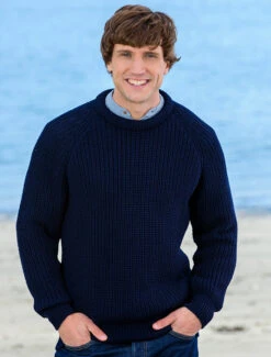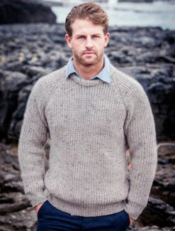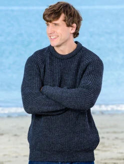 Our handsome Irish Fisherman Ribbed Sweater is made with 100% pure new wool, a natural breathable fibre. The simple crew neck design looks great and makes a stylish complement to casual outfits. A true wardrobe essential this fisherman sweater will keep you comfortable and warm against the elements year after year.