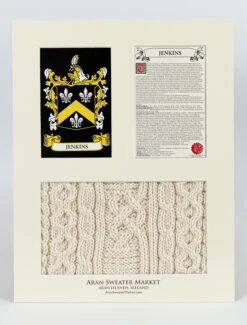 - Lovingly handcrafted & using the finest 100% soft new wool, this Jenkins Clan Aran & History Display has been created following the historic family pattern of your clan.