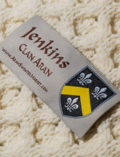 The Jenkins Clan Aran Poncho is a precious gift for anyone of Jenkins Clan heritage. Lovingly crafted from the finest 100% soft new wool, this Aran Poncho has been created following the unique Jenkins Clan Aran pattern.