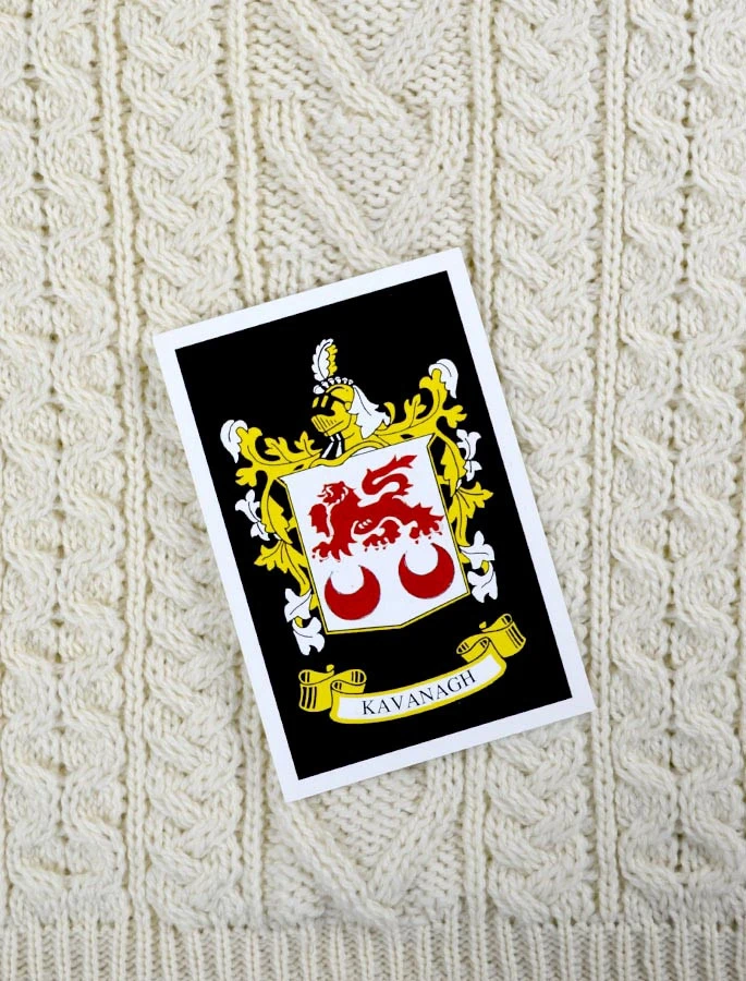 The Kavanagh Clan Aran Throw is a precious gift for any home wherein Kavanagh heritage proudly resides & will be cherished by families of the Kavanagh name for generations to come. Lovingly crafted from the finest 100% soft new wool, this Aran throw has been created following the unique Kavanagh Clan Aran pattern.