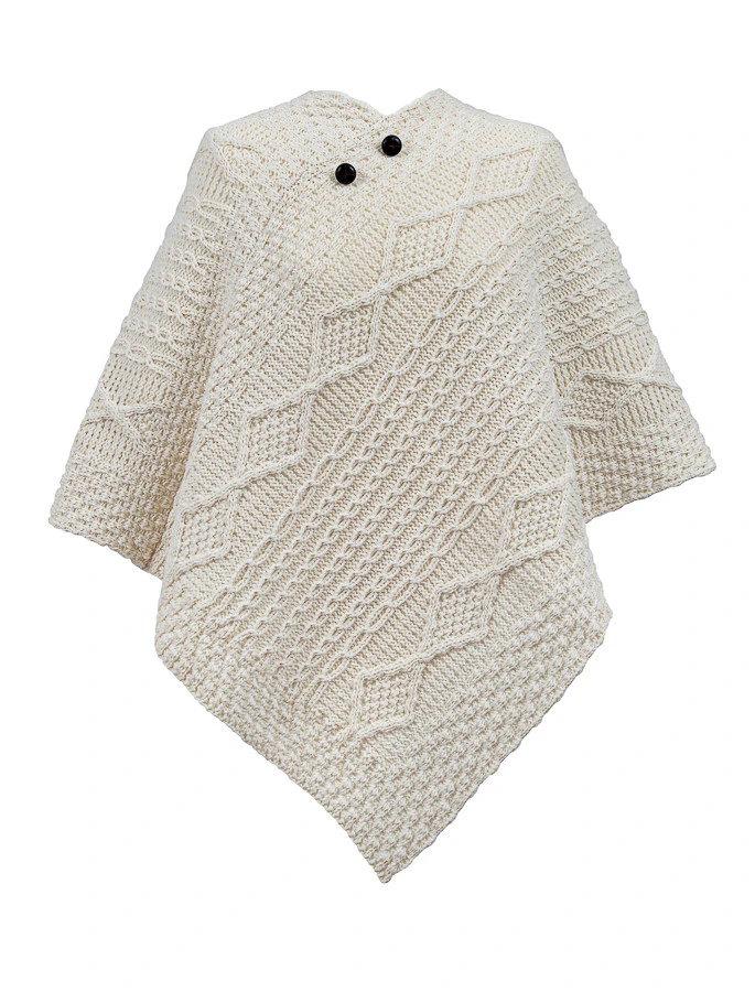 The King Clan Aran Poncho is a precious gift for anyone of King Clan heritage. Lovingly crafted from the finest 100% soft new wool, this Aran Poncho has been created following the unique King Clan Aran pattern.