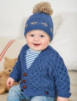 Using a fabulous palette of colours from our Comfort, Big Value & Recycled Cotton Aran ranges, hand knit designer Sue Batley-Kyle has created a stunning collection of 28 knits for babies and children from birth to 7 years.